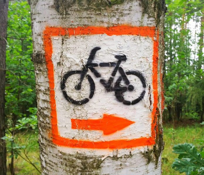 Trasa jest w miarę dobrze oznaczona (oznaczenia jak na zdjęciu na górze), choć pojawiają się miejsca, że tego oznaczenia brak w kluczowych miejscach 😉 dlatego warto jednak mieć wgraną mapę do zegarka ja korzystałem z pliku gpx pobranego ze strony bikemap
