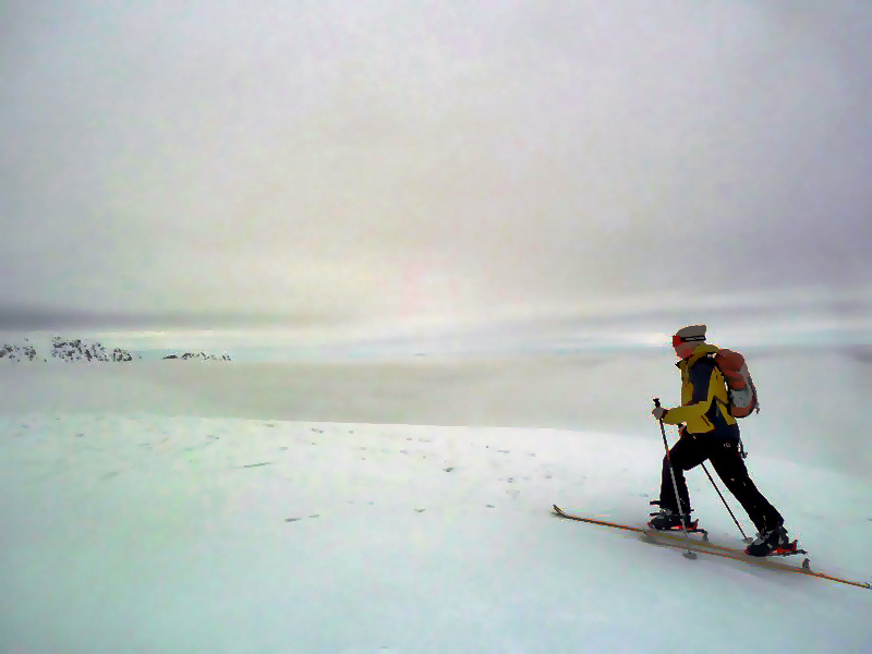 Wiosny jak nie widać tak nie widać postanowiliśmy z Tomkiem wyskoczyć na chwilę na narty w Taterki. Warunki były hmm romantyczne 😉 jak poniżej opisał to Tomek sama biel. Faktycznie często były takie sytuacje, że bardziej czuło się ruch niż go widziało. Np po jakiejś chwili zorientowałem się, że mimo skantowanych nart zsuwam się coraz szybciej w nicość, biel …. albo nagle się wywracam bo zjechałem na płaski teren a błędnik nadal uważał, że jestem na stromiźnie i takich sytuacji była cała masa. Bardzo fajnie mimo wszystko było, od rana narty potem obiad i dalej bieganie. Wypad intensywny.